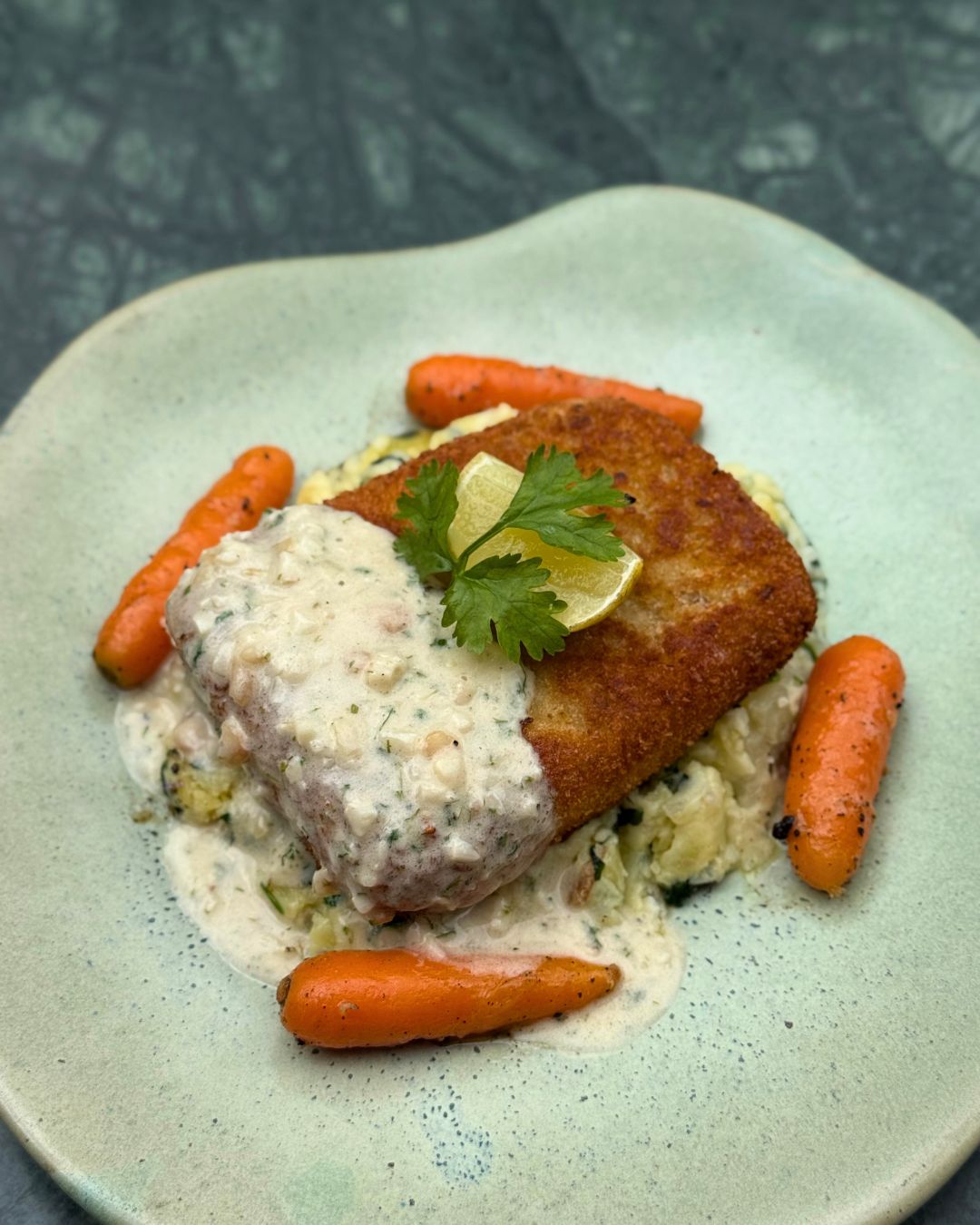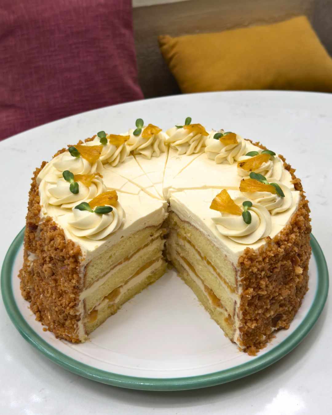 1: Herb and Australian Macadamia Nuts Crusted fish at Monkey Bar; 2: Australian Macadamia, Roasted Pineapple, and Vanilla Chiffon at Juny’s Bakehouse