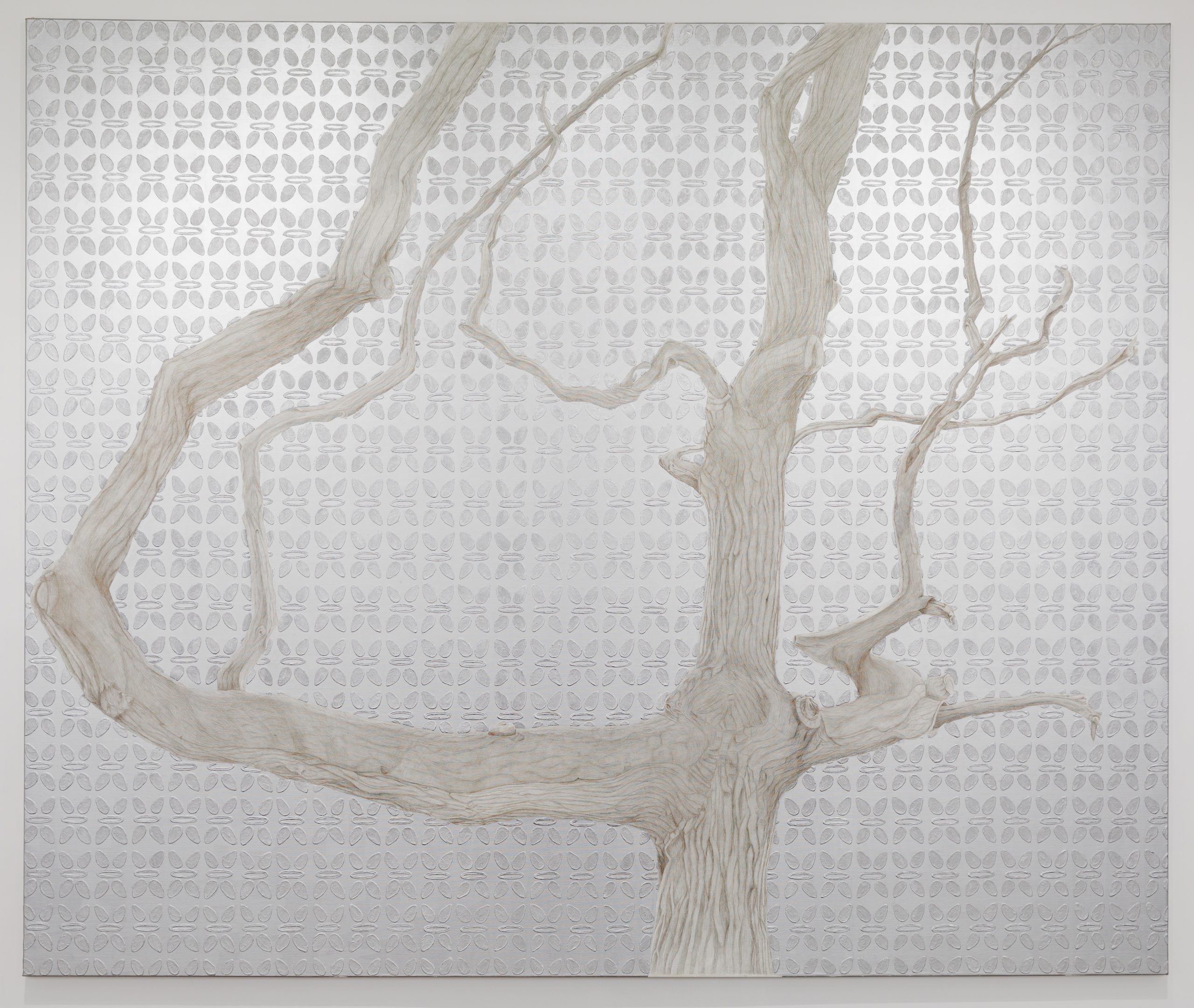 Rigorous and emotional, Praneet’s work resists classification and pivots between mediums and forms, never content with surface-level engagement. Overlapping Landscapes also referred to as Bone, one of his centerpieces, visualises this handsomely. A silverpoint sketch of an oak tree from the Bergen Forest in North Holland is placed in visual dialogue with a relief tile from the 600-year-old tomb of Queen Miran Zain in Kashmir. Here, two places from Soi’s life are brought into silent communion — one, a personal refuge; the other, a historic convergence of Buddhist, Hindu, and Islamic visual languages. While these forms do not mimic each other, they do resonate. The juxtaposition is not obvious, but that’s precisely the point.